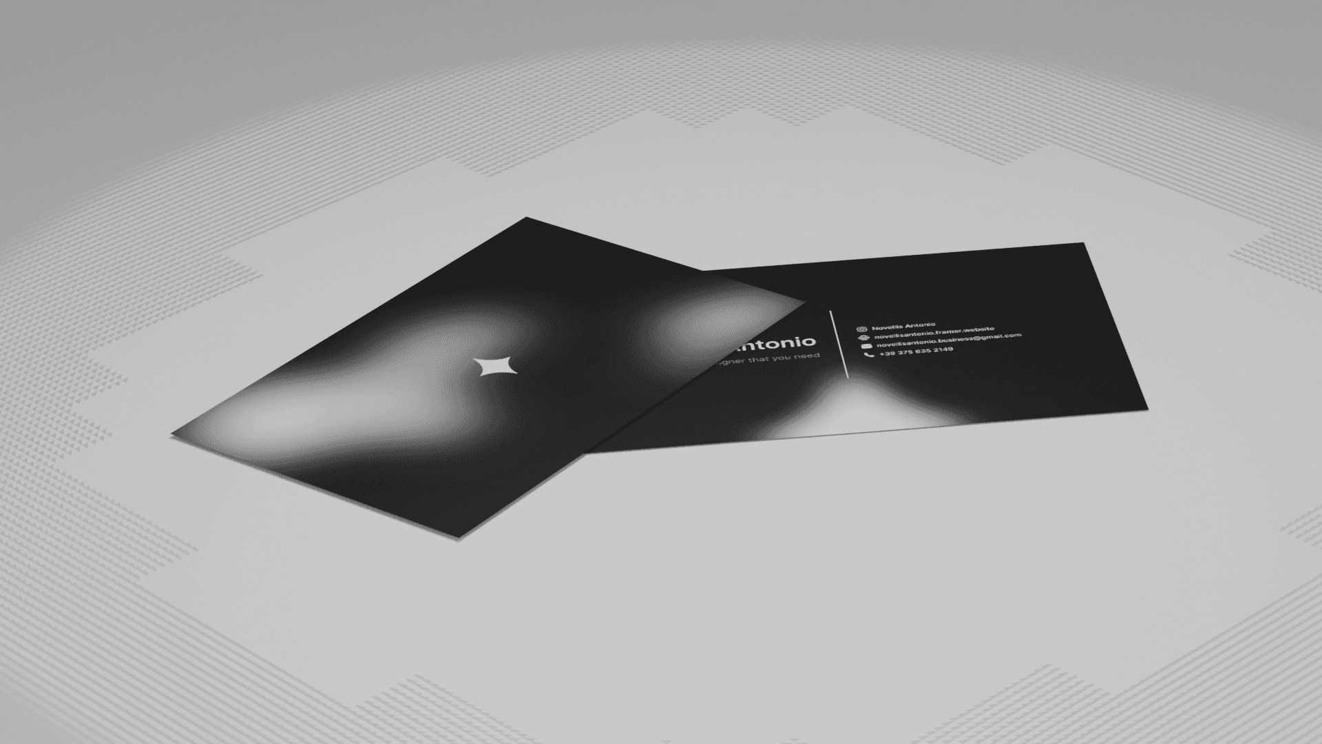 A elegant and professional business card concept that embodies a modern creative identity. The design utilizes a high-contrast monochromatic palette with a sophisticated blur effect and a central star motif, symbolizing clarity and vision. With a clean layout and focused typography, this card is designed to leave a lasting impression through elegance and minimalist precision.