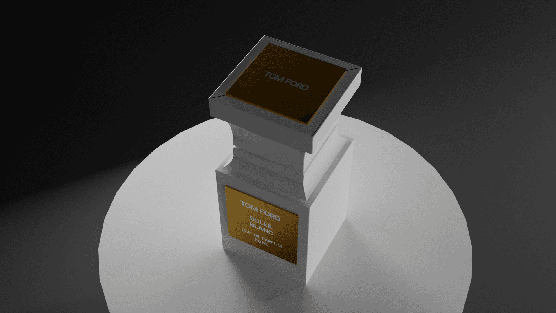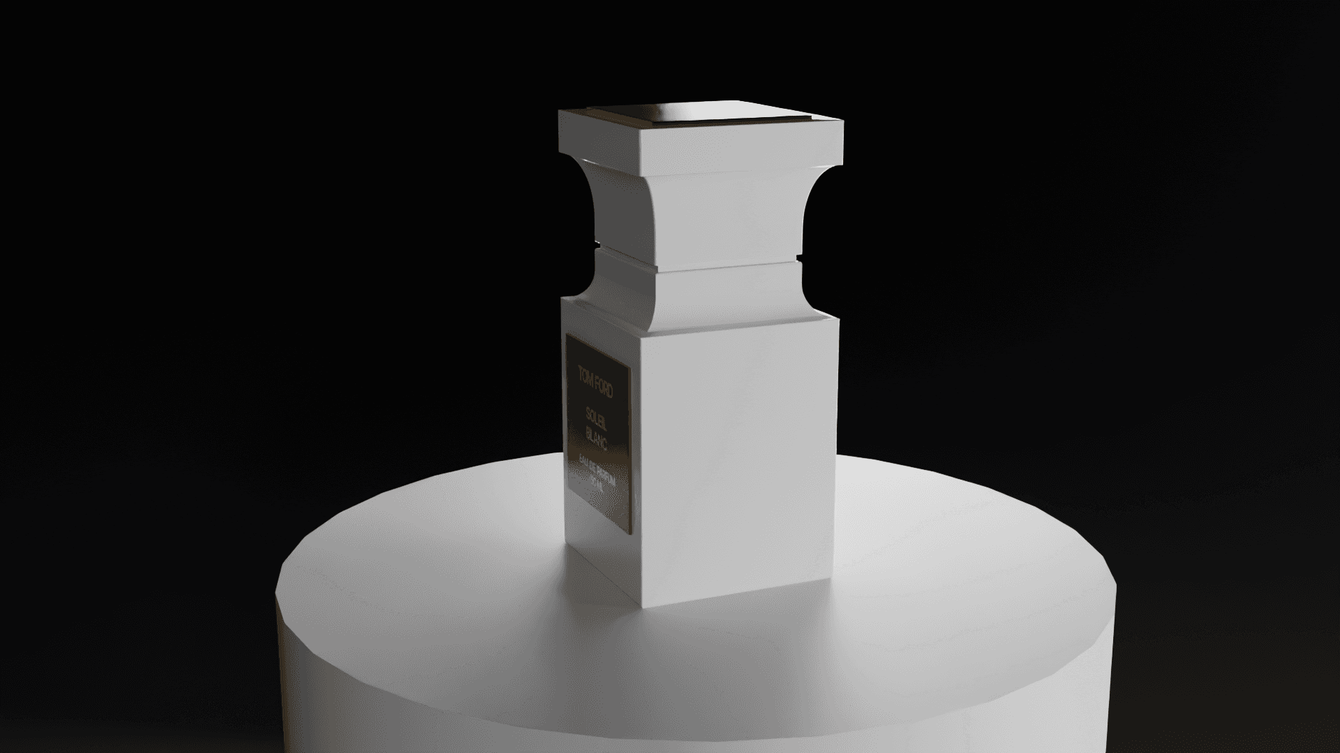 (Concept) A photorealistic 3D study of the "Soleil Blanc" fragrance, created using Blender. The project focuses on the balance between minimalist studio lighting and high-end material design. By placing the iconic white and gold bottle on a clean cylindrical pedestal against a deep dark background, the visualization emphasizes the product's architectural silhouette and its premium, sun-drenched identity.